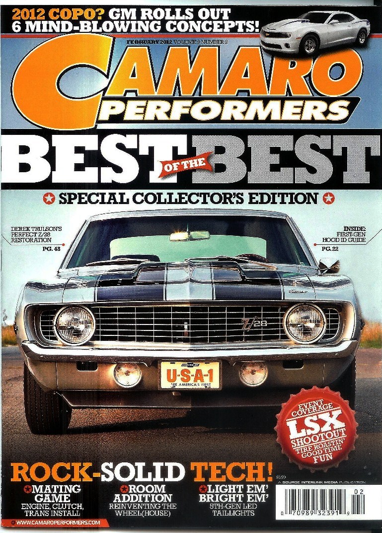 Derek's "Race Ready" Z/28 was the cover car of the February 2012 Camaro Performers Magazine